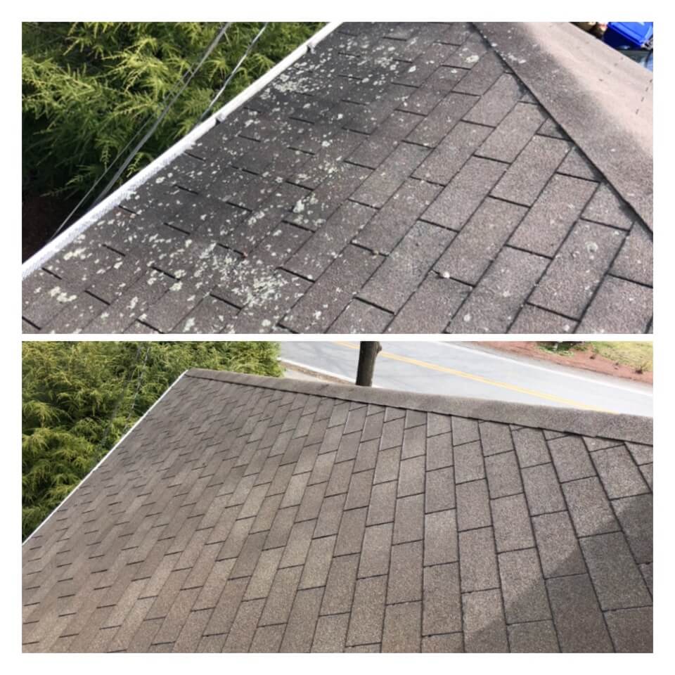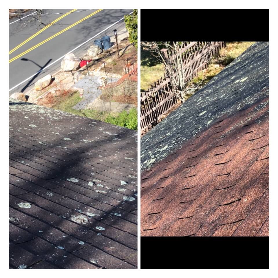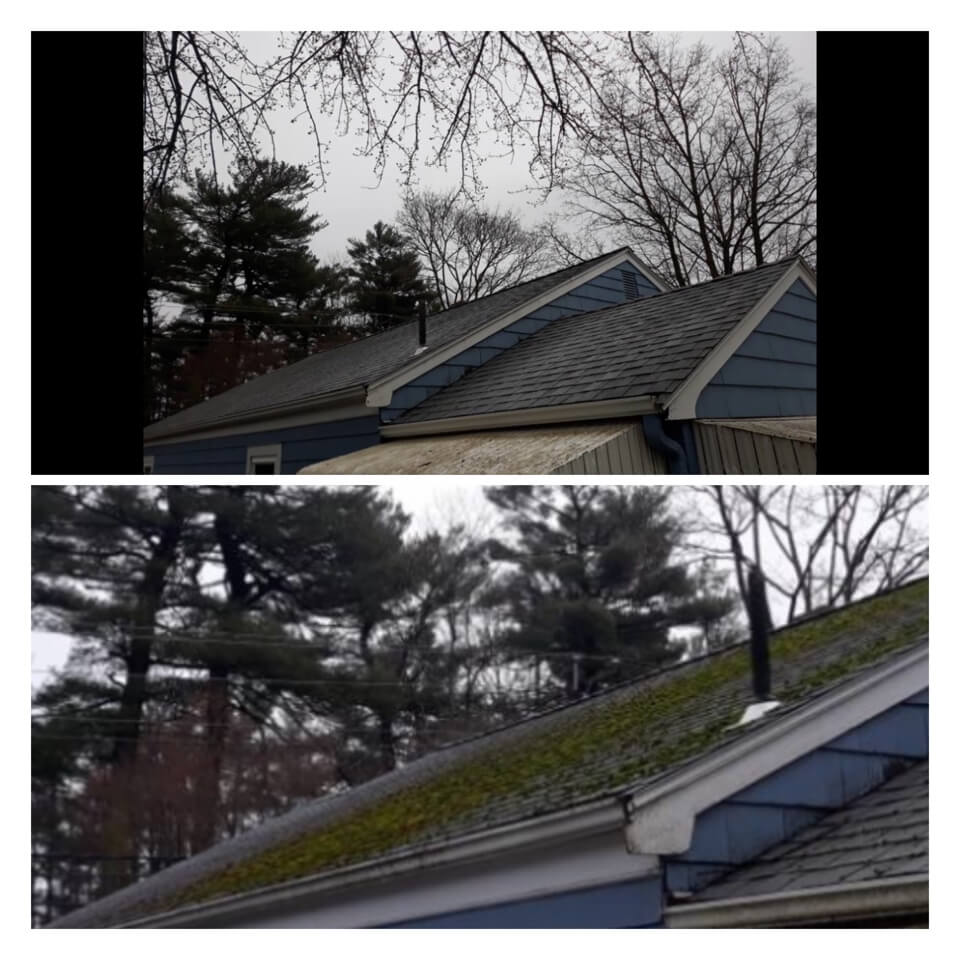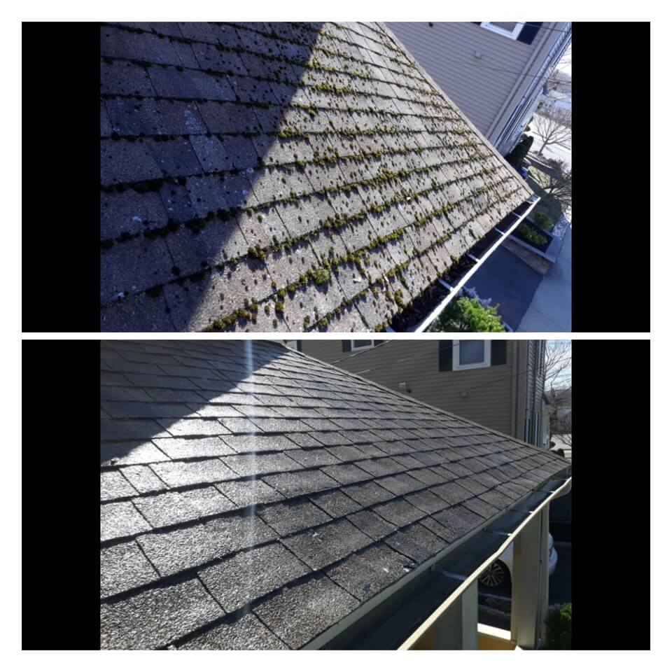 HiCleaners is the most experienced company in Randolph, MA that deals with roof washing and roof soft washing. All of our employees are trained to recognize precise solution mixing ratios to provide you with the safest and most effective soft washing service. Roofs are a commonly neglected part of a house due to the fact that most people don’t have ladders to access it, so it is very easy to just leave it alone and forget about problems that may start to arise. Just like many home owners, discoloration and small bits of moss on a roof can be overlooked because of the misconception that it is just aesthetic. However, it isn’t just aesthetic, the moss slowly lifts the granules off the shingles which in turn shorten the life of the shingle. The moss also spreads, just like any bacteria if it is left alone for too long, it can quickly become a problem that spirals out of control. Call HiCleaners for a free quote, we only use the most advanced eco-friendly solutions and equipment to make sure the job is done right, for the safety of the employees, your plants, grass, pets, and children.