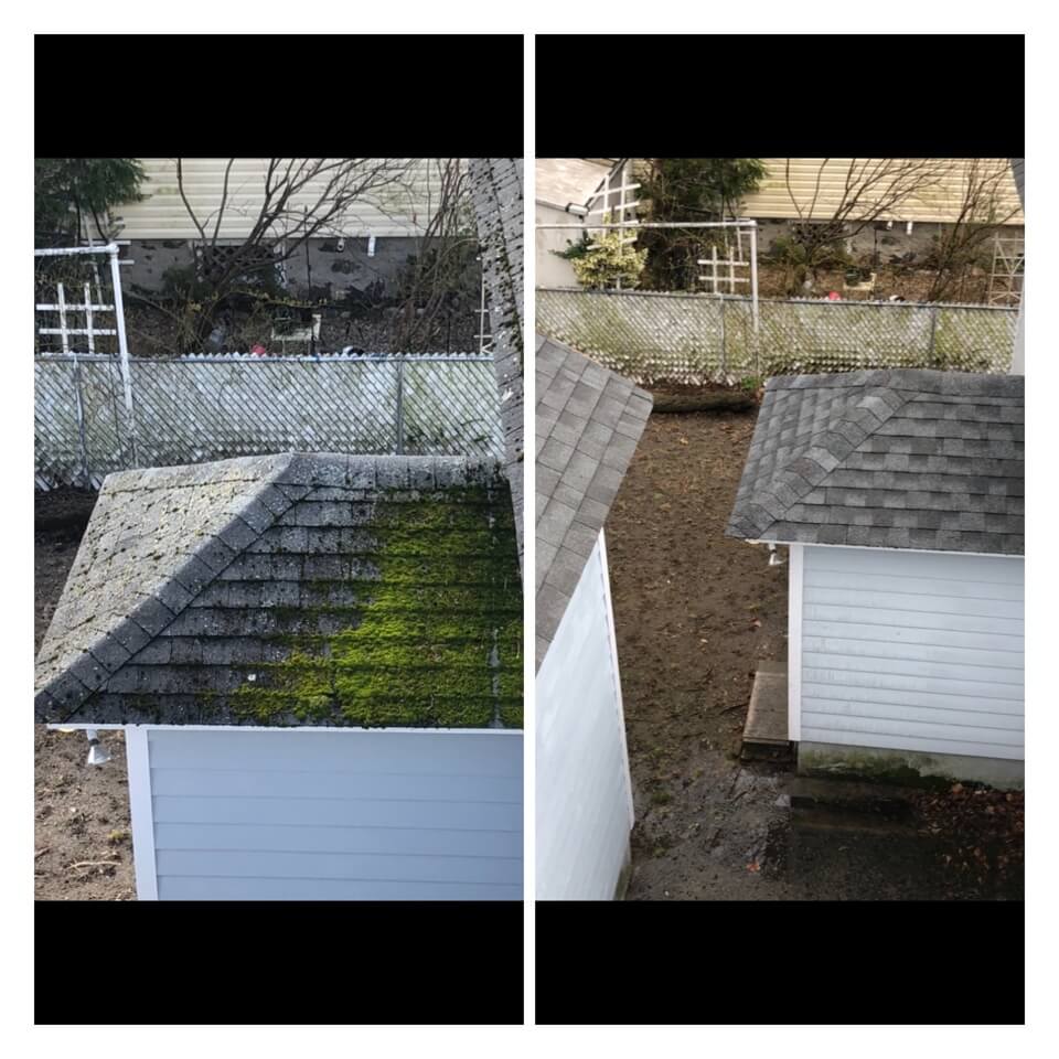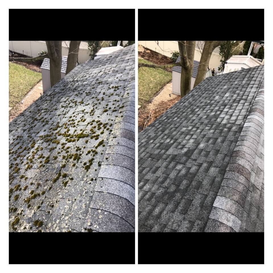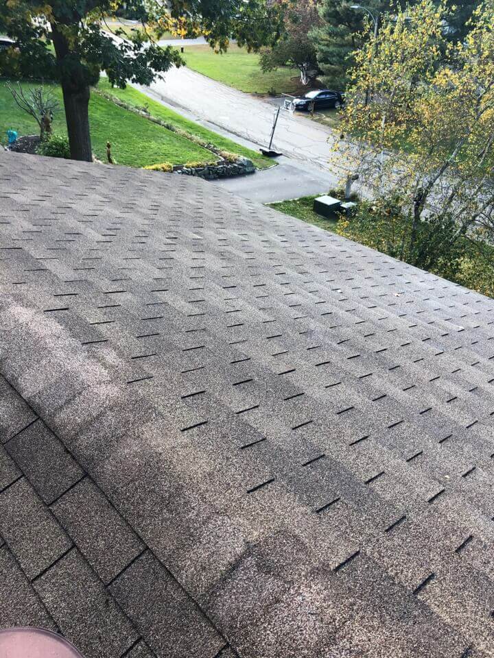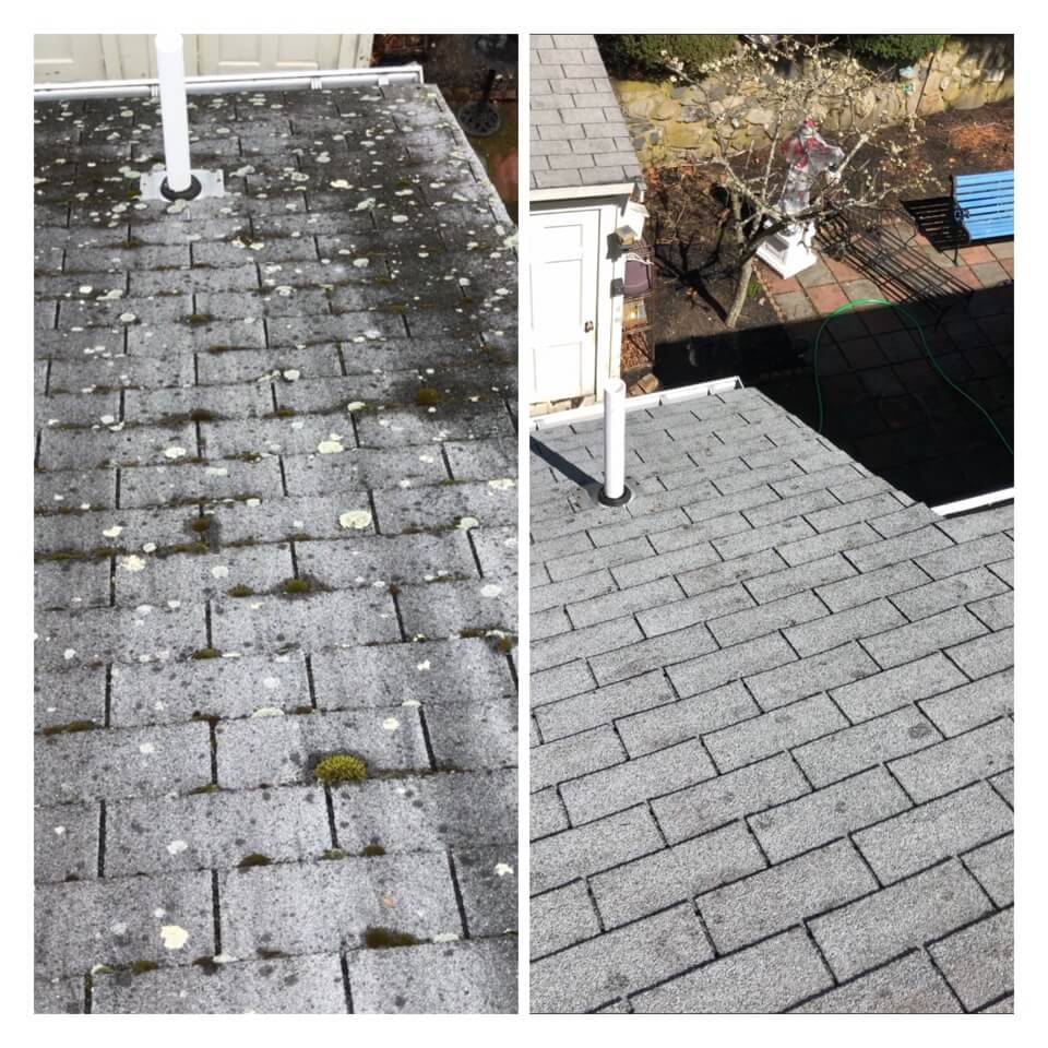 HiCleaners is the most experienced company in Randolph, MA that deals with roof washing and roof soft washing. All of our employees are trained to recognize precise solution mixing ratios to provide you with the safest and most effective soft washing service. Roofs are a commonly neglected part of a house due to the fact that most people don’t have ladders to access it, so it is very easy to just leave it alone and forget about problems that may start to arise. Just like many home owners, discoloration and small bits of moss on a roof can be overlooked because of the misconception that it is just aesthetic. However, it isn’t just aesthetic, the moss slowly lifts the granules off the shingles which in turn shorten the life of the shingle. The moss also spreads, just like any bacteria if it is left alone for too long, it can quickly become a problem that spirals out of control. Call HiCleaners for a free quote, we only use the most advanced eco-friendly solutions and equipment to make sure the job is done right, for the safety of the employees, your plants, grass, pets, and children.